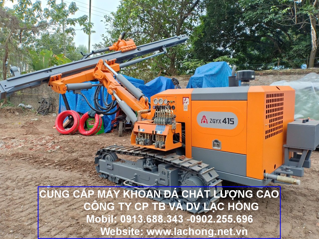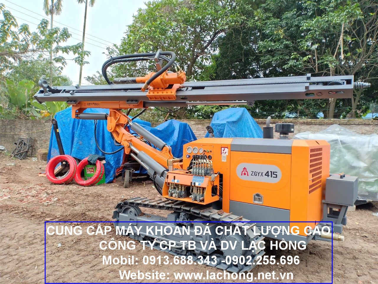 Máy khoan đá tự hành ZGYX-415 có thể sử dụng máy nén khí chạy điện 75SDY-14.5 hoặc máy nén khí chạy Diezel 158SCY-15. Máy khoan 415 được thiết kế để khoan được mọi địa hình, vị trí khác nhau. Tháp khoan có thể xoay được 180 độ với nhiều ưu điểm nổi bật.