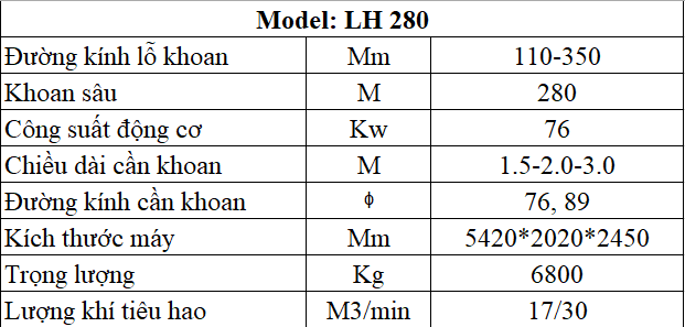 Máy khoan giếng LH280 thiết kế mới nhất, hiện đại nhất tại thị trường Việt Nam.
